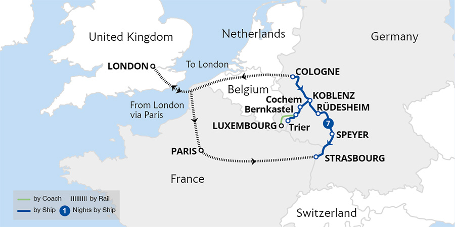 Join us as we uncover the Moselle and Rhine, where every bend of the river reveals breathtaking autumnal hues and every port beckons a new discovery. Ancient castles and Roman ruins sprinkle the red, gold, and orange landscape on this leisurely cruise as we sail by sloped vineyards and rolling hills ready for harvest. Visit charming towns...