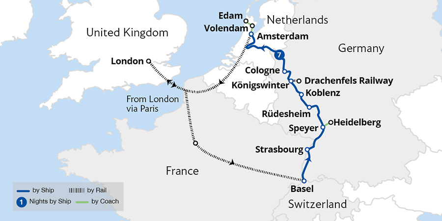 Embark on a scenic river cruise from Switzerland to the Netherlands, uncovering enchanting landscapes throughout your journey. Discover the joys of a luxury Rhine cruise while drifting beside forested valleys and charming riverside villages. Soak up idyllic views of the UNESCO-listed Rhine Gorge, adorned with stunning castles, forests and...